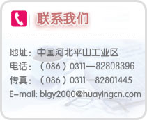 公司地址:中國河北平山縣東回舍鎮北望樓村東 電話:(086)0311-82808396 傳真:(086)0311—82801445 E-mail: blgy2000@huayingcn.com